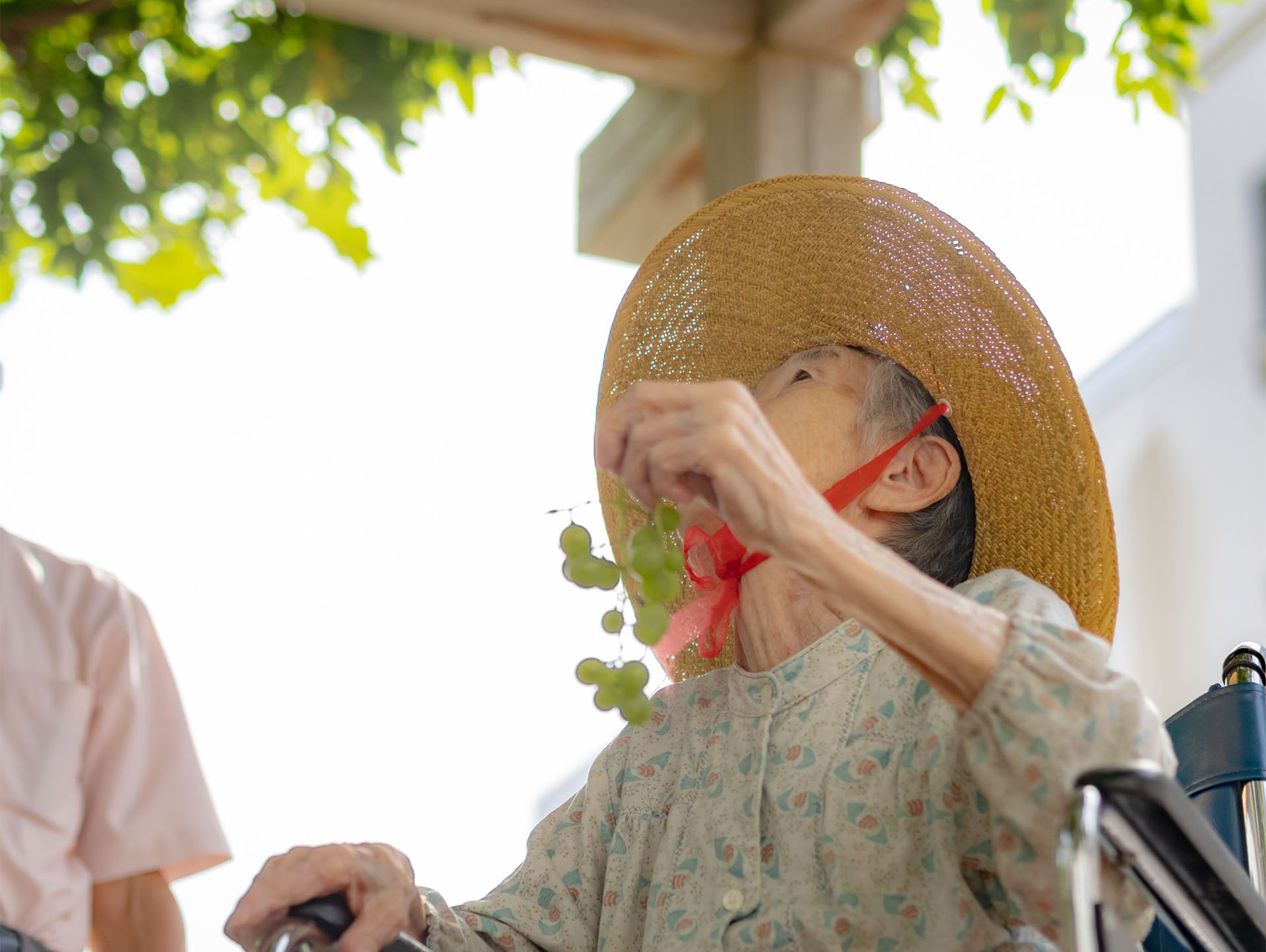 皆様にスイーツと当施設特産のブドウを召し上がって頂きました。 介護スタッフによるピアノ演奏に手拍子を添えて歌を楽しまれました。