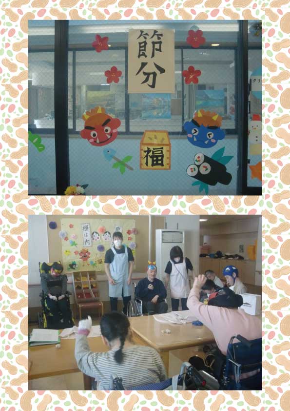 2月3日の節分 各フロアで豆まきが行われました。 「鬼は外!福は内!」と元気な声が響いてました。
